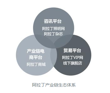 阿拉丁電子商務(wù)有限公司是光亞集團(tuán)旗下子公司,依托21年照明展會(huì)及10互聯(lián)網(wǎng)運(yùn)營(yíng)的獨(dú)特基因與資源優(yōu)勢(shì),創(chuàng)建了會(huì)展+電子商務(wù)平臺(tái)模式。目前,擁有資訊平臺(tái)——阿拉丁照明網(wǎng)、阿拉丁雜志,產(chǎn)業(yè)鏈電商平臺(tái)——阿拉丁商城,貿(mào)易平臺(tái)——阿拉丁VIP網(wǎng)及線下旗艦店三大業(yè)務(wù)單元,三者共同構(gòu)成了阿拉丁產(chǎn)業(yè)鏈生態(tài)體系。阿拉丁產(chǎn)業(yè)鏈生態(tài)體系的形成,是阿拉丁作為照明行業(yè)互聯(lián)網(wǎng)+引領(lǐng)者的又一大跨越。