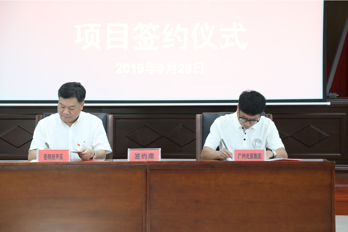 光亞集團董事長潘文波與岳陽經開區管委會主任謝春生簽約
